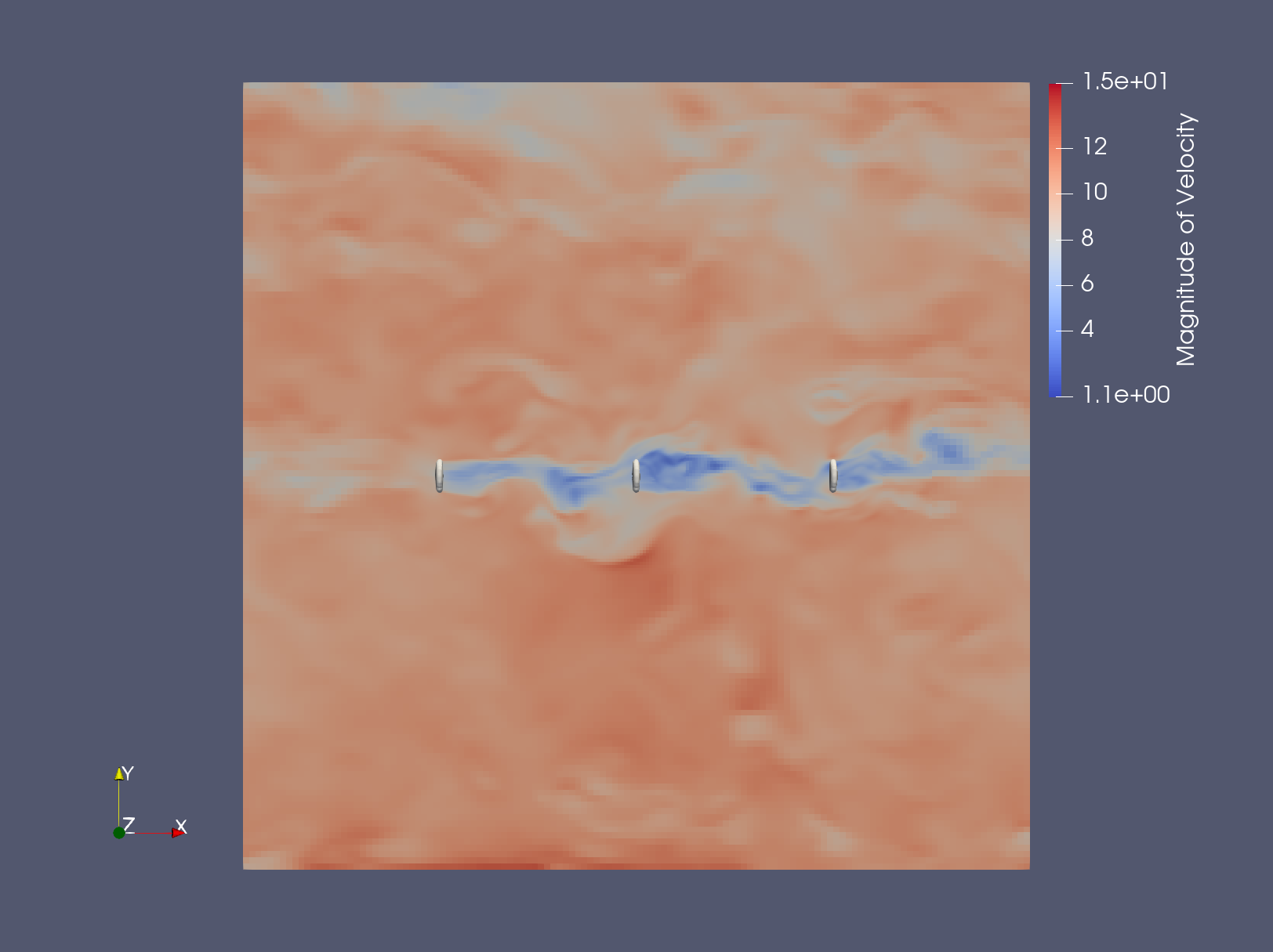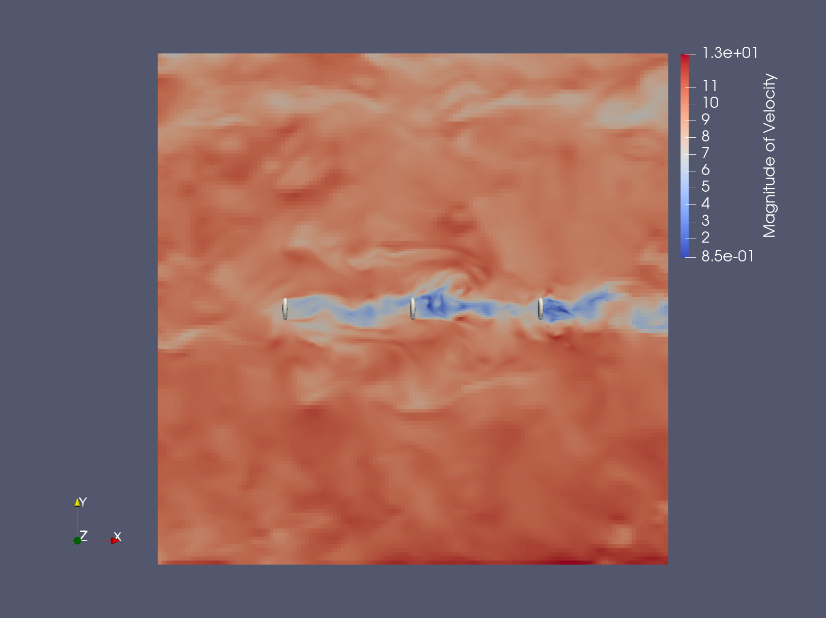 Now that we have run our precursor simulation and saved inflow boundary condition data, we can run a turbine simulation. Here is the input file: